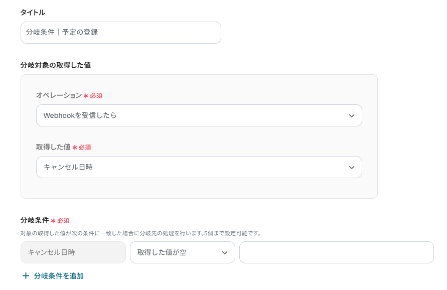 2.上記で設定したTimeRexのWebhookは予定の登録だけでなく、キャンセルの場合でも起動してしまいます。