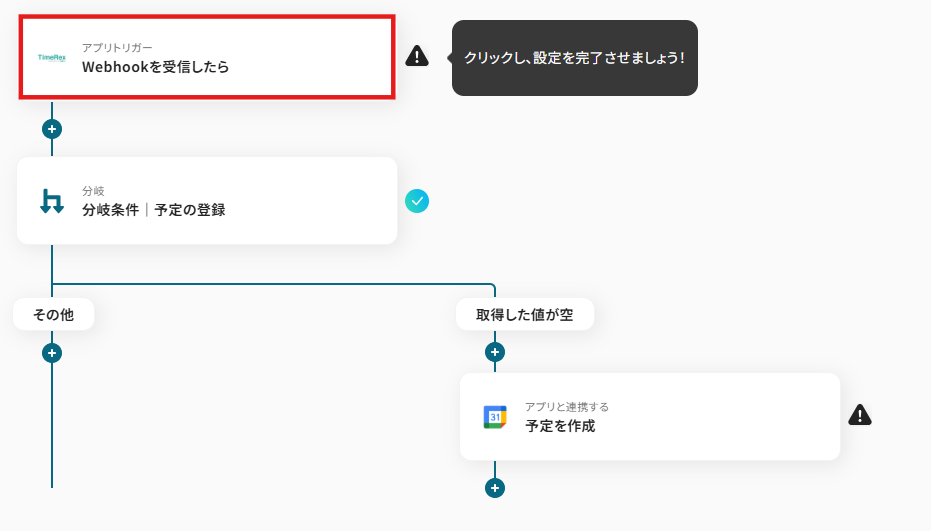 - TimeRexのトリガー設定およびGoogleカレンダーのアクション設定