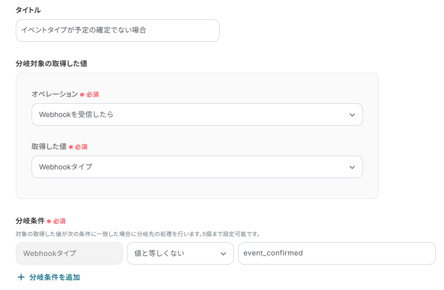 テンプレートでは下記のように設定されていますが、分岐条件を変更・追加したい場合は任意で設定してください。