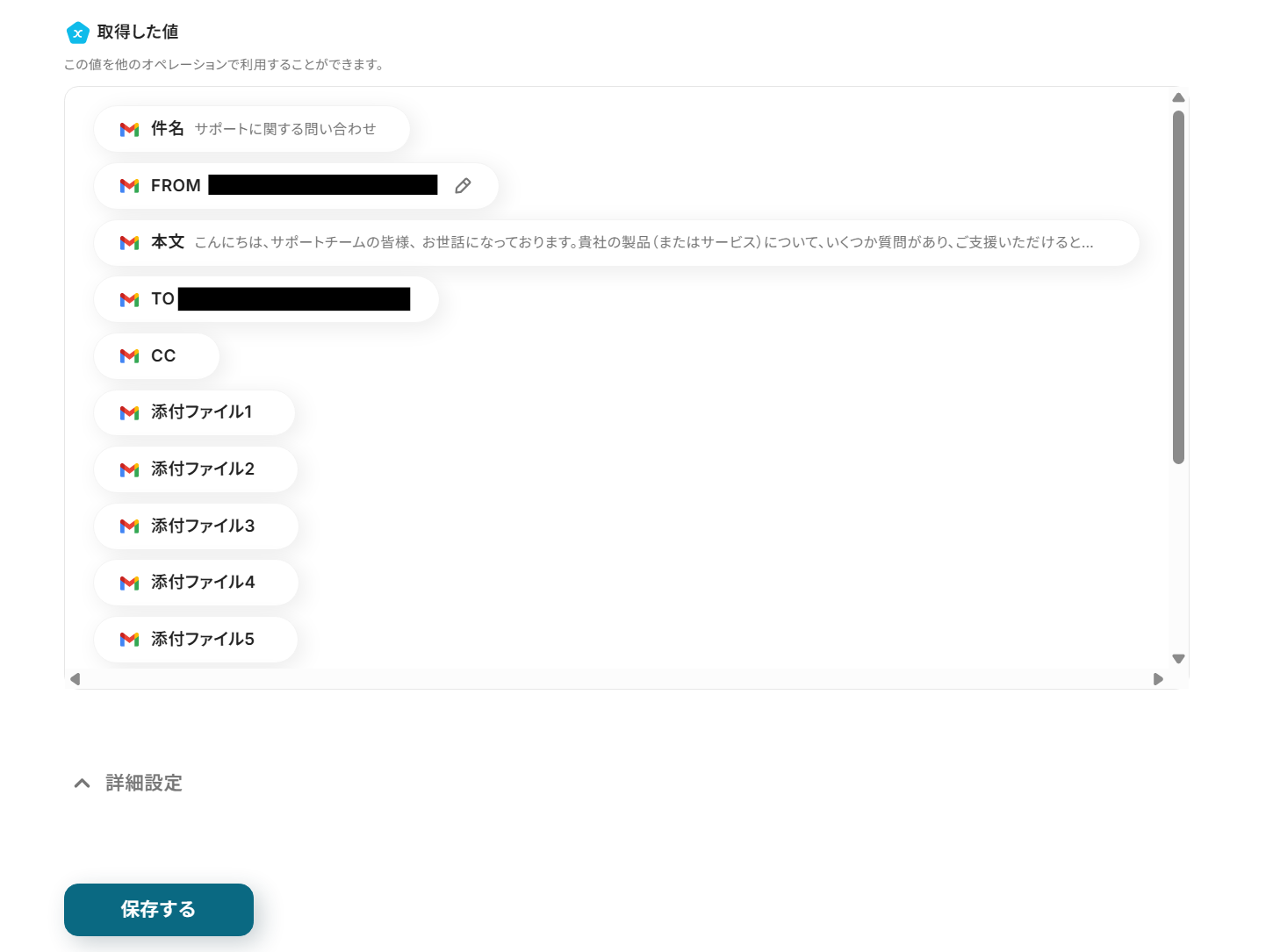 画面下の保存するボタンを押下し、Gmailのトリガー設定を完了させてください。