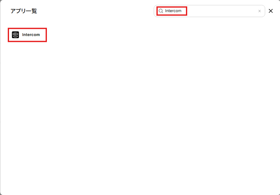 検索ボックスにIntercomと入力し、Intercomのアイコンをクリックします。