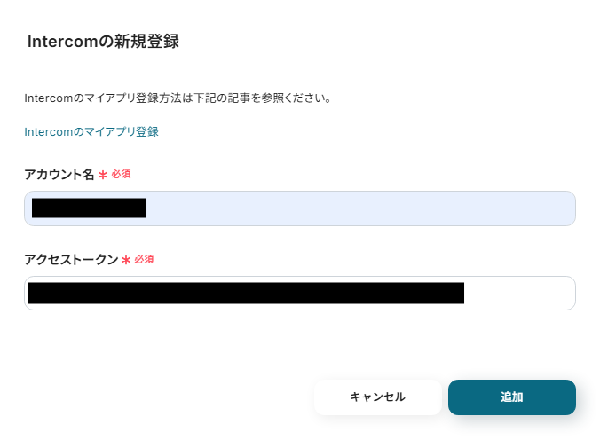 Intercomのマイアプリ登録を参考にIntercomのアクセストークンを記入してください。