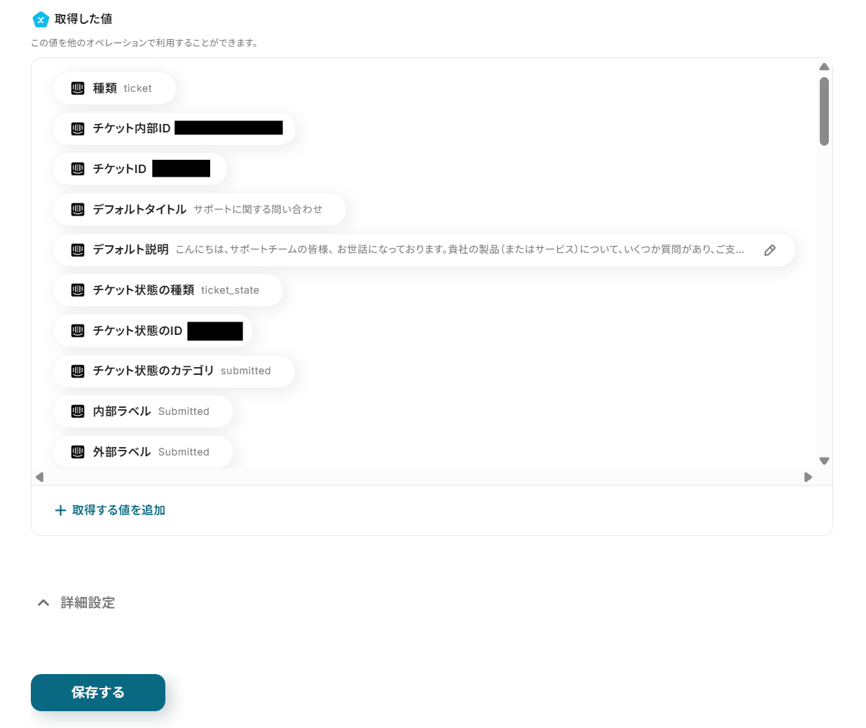 画面下の保存するボタンをクリックし、Intercomへチケットを作成する設定を完了させてください。