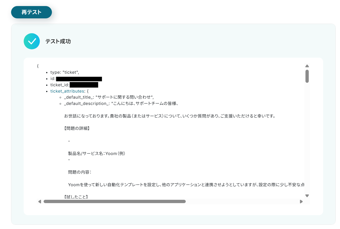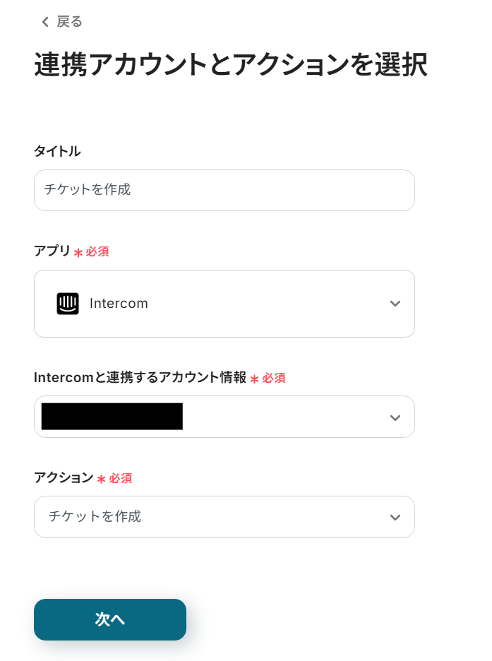 「API接続設定」で設定した内容でIntercomにチケットが作成されます。以下のように設定を進めてください。