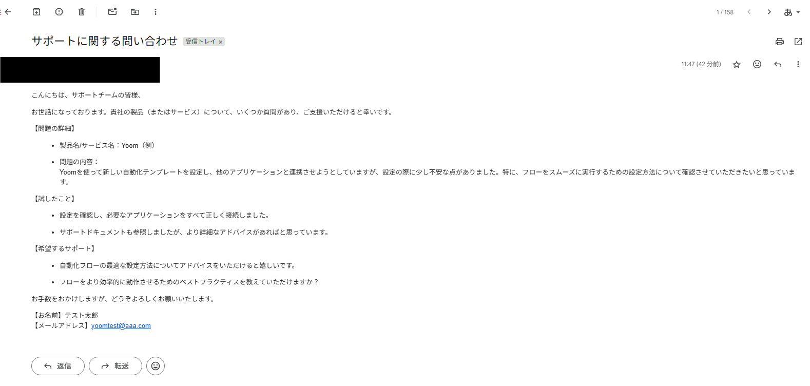 メールとIntercomの連携を自動化することで、これまで手作業で行っていたメール内容の転記作業の手間を削減し、ヒューマンエラーや対応漏れの防止につながります。