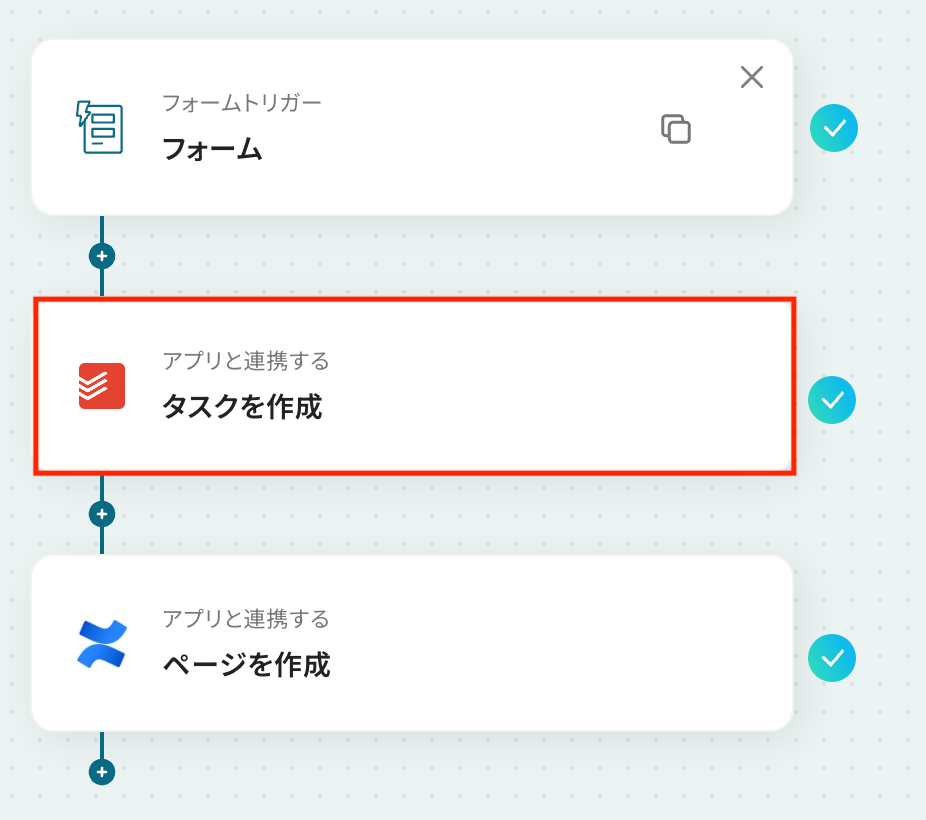 例えば、フォームで受け付けた依頼内容をもとにTodoistにタスクを作成し、同時にその詳細をConfluenceのページとして自動で起票するといった連携が可能です。