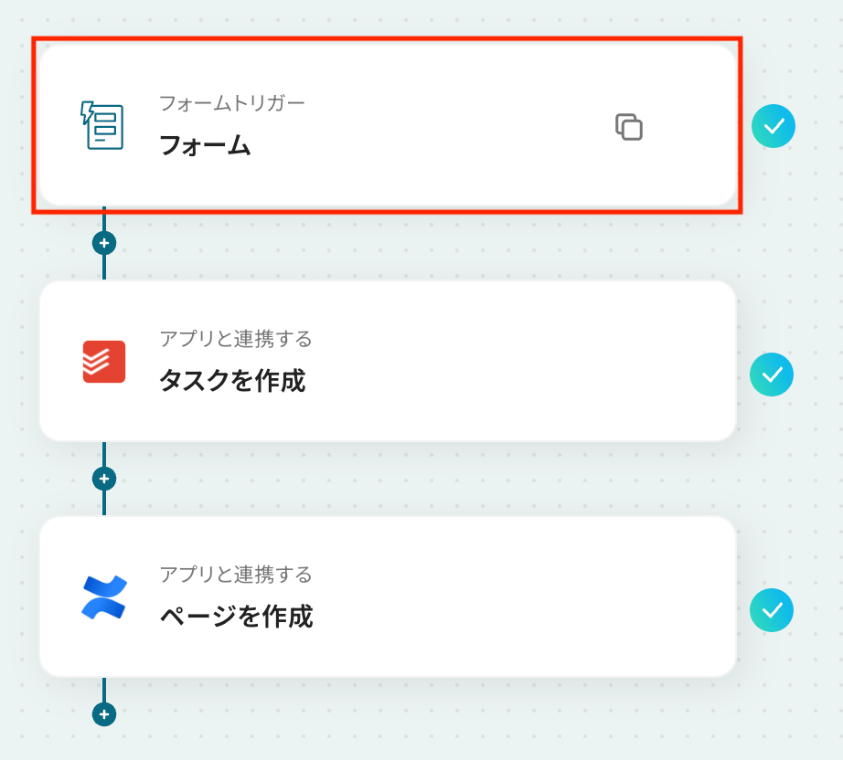 このワークフローを活用すれば、フォームへの回答送信をきっかけにTodoistへのタスク作成とConfluenceへのページ作成を自動化できるため、こうした定型業務を効率化し、対応漏れなどのミスを防ぎながら、より重要な業務に集中できる環境を構築します。