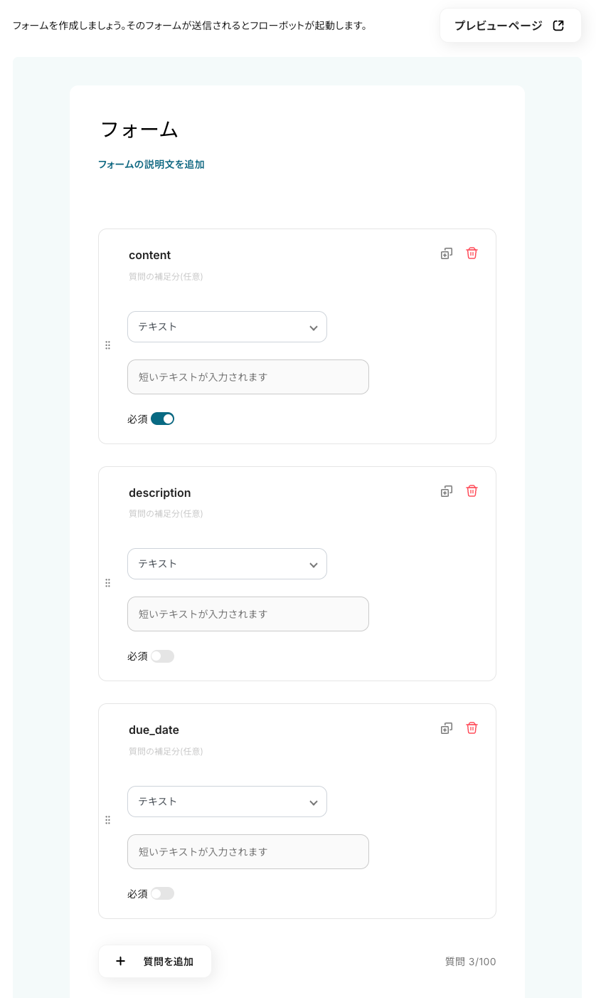 以下はフォームのプレビュー画面です。