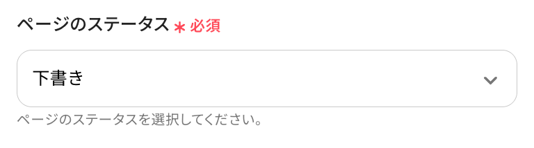 ページのステータスを選択します。今回は「下書き」を設定しています。
