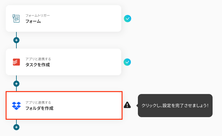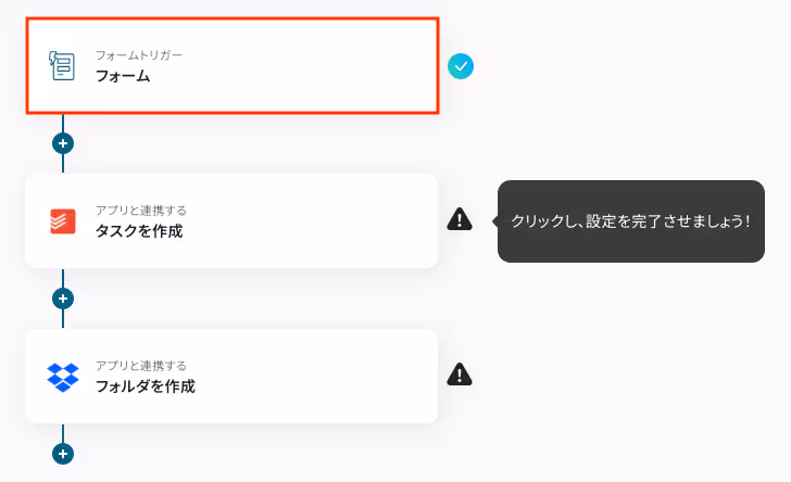 今回は「フォームに回答が送信されたら、Todoistにタスクを作成し、Dropboxにフォルダを作成する」フローを作成していきます!作成の流れは大きく分けて以下のとおりです。