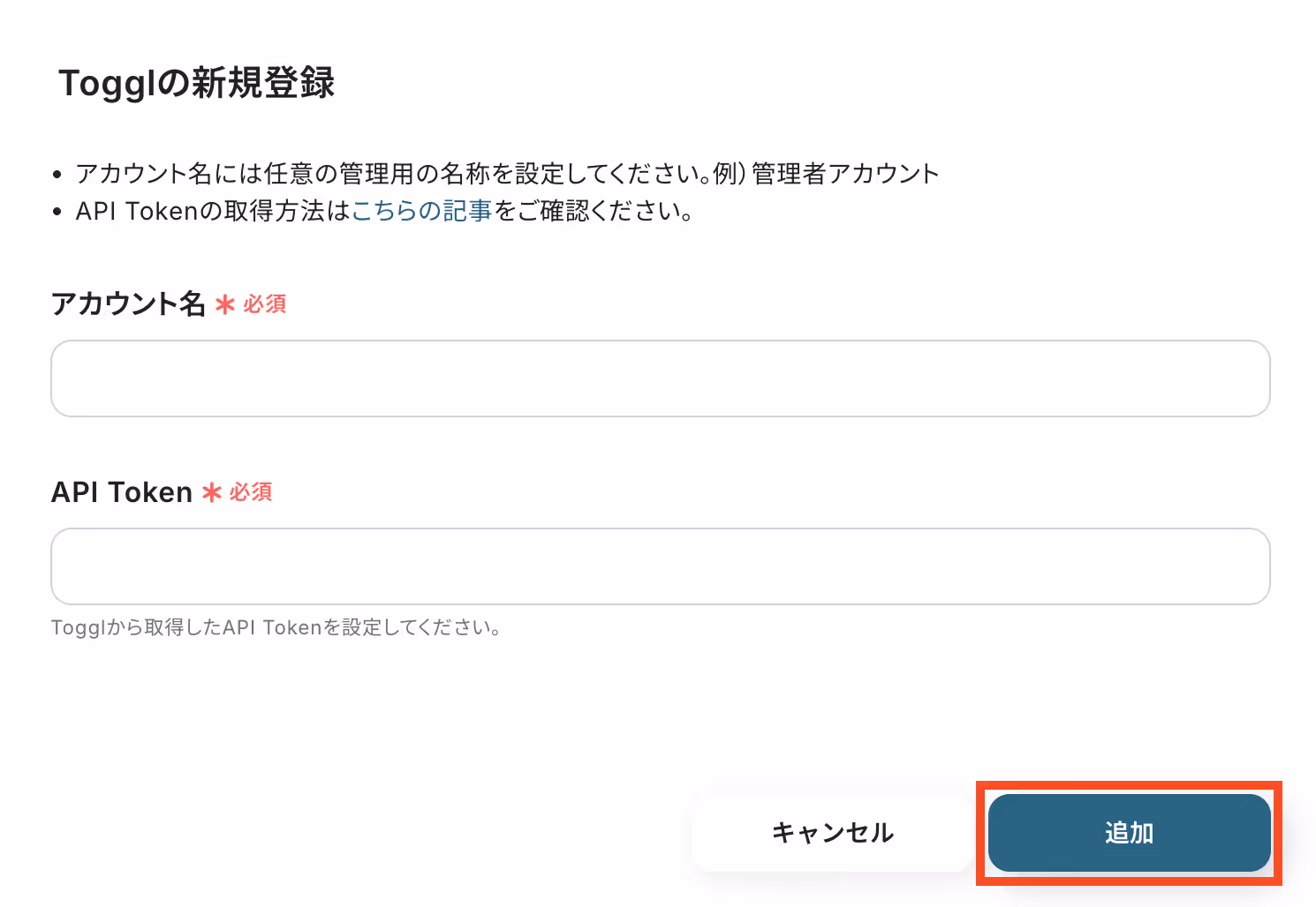 アカウント名とAPI Tokenを記入して「追加」ボタンを押します。