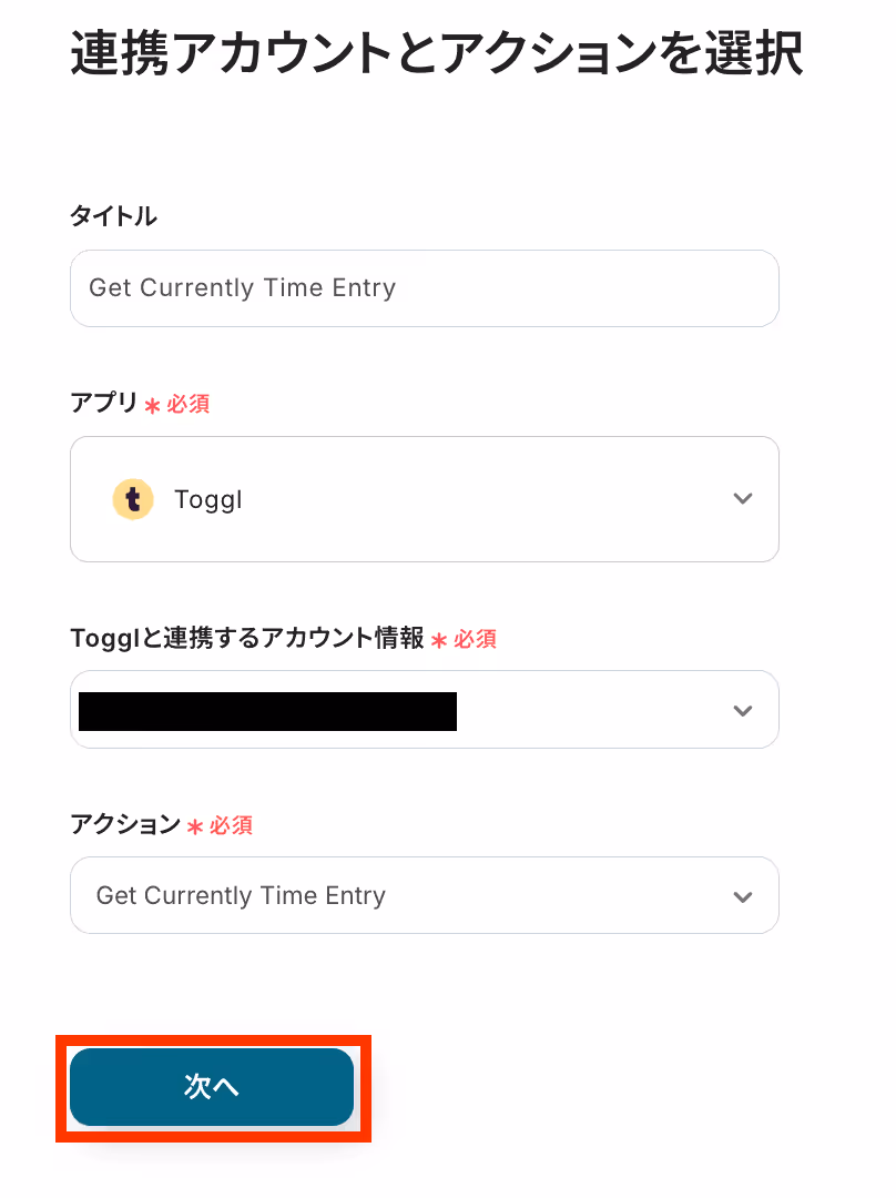 トリガーアクションは、テンプレート通りに「New Time Entry」のままで大丈夫です。