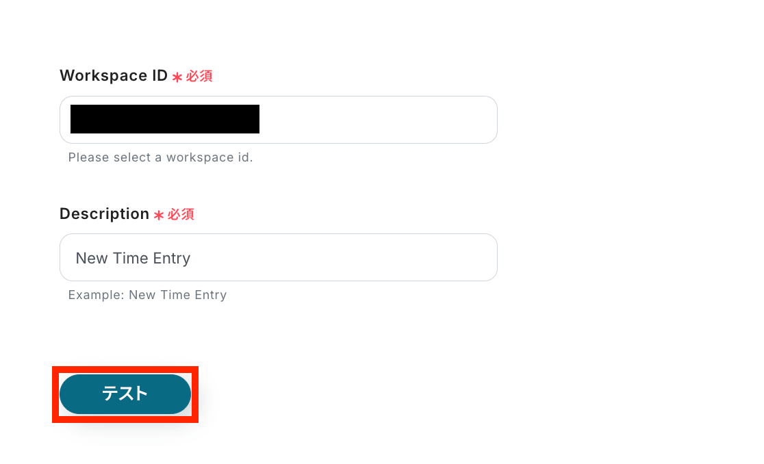 「Description」を任意の名称で設定したら、TogglとのAPI接続が正しく行われるかの確認テストを行います。