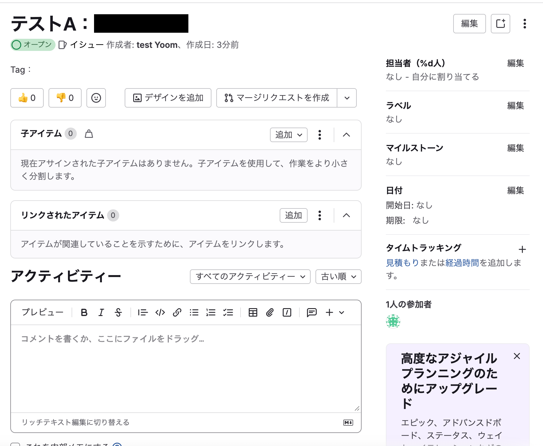 新規のイシューが作成されています。