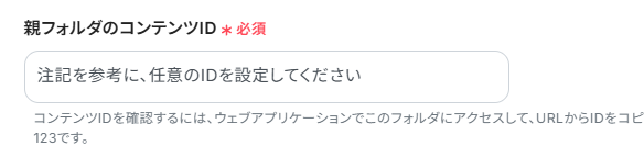 親フォルダのコンテンツIDはBoxで確認し入力します。