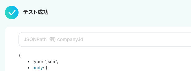 テスト成功後、以下の画面のように取得した値にTrelloの内容が表示されます。