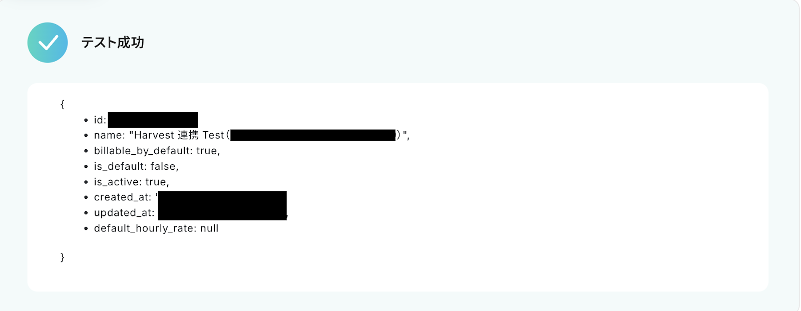 テスト成功で、Harvestに新しいタスクが作成されています!