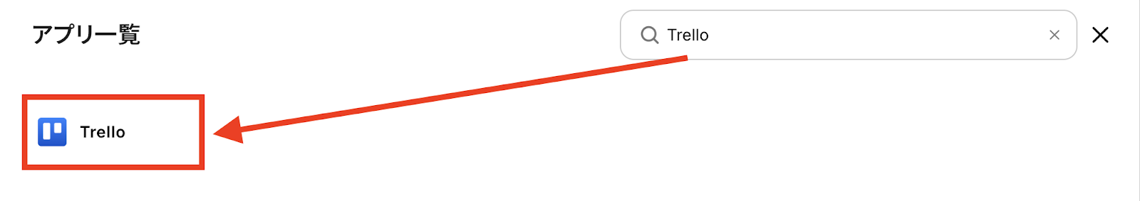 右上の検索ボックスに「Trello」と入力して、表示されたTrelloのアイコンをクリックします。