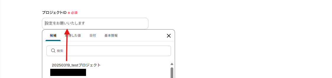 プロジェクトIDは、表示される候補から任意で選択しましょう。