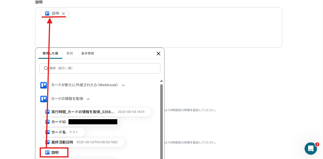 説明も同様に、取得した値からTrelloの「説明」を選択します。