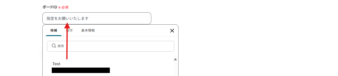 ボードIDは、枠内をクリックし表示される候補から選択しましょう。