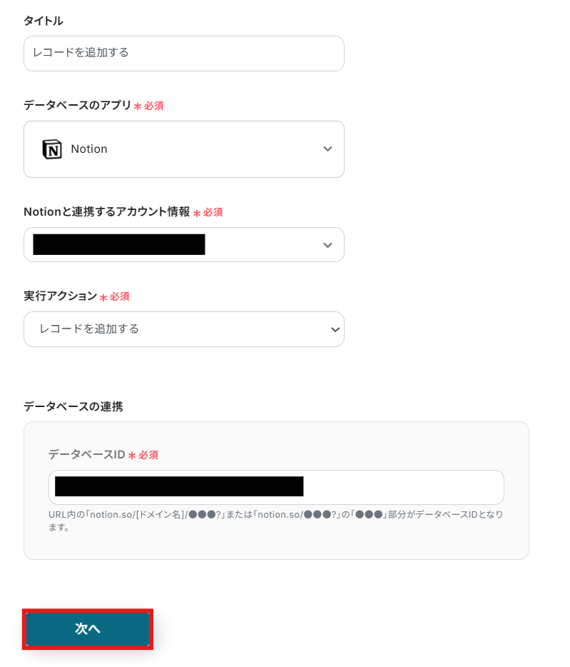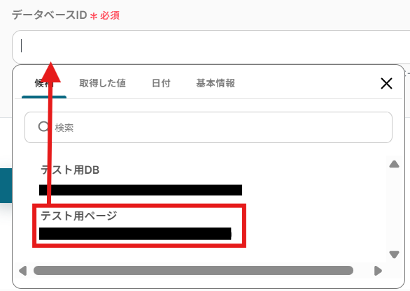 - データベースID:プルダウンよりレコードを追加するデータベースを選択しましょう。