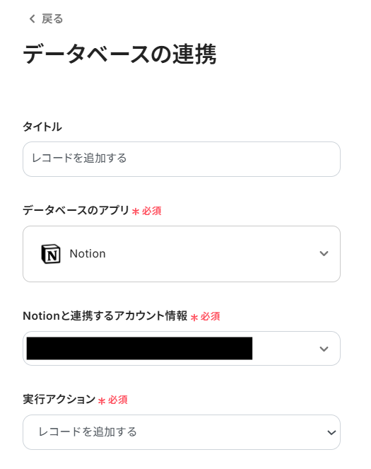 - 追加するレコードの値:Notionに登録したい値をプルダウンより設定しましょう。