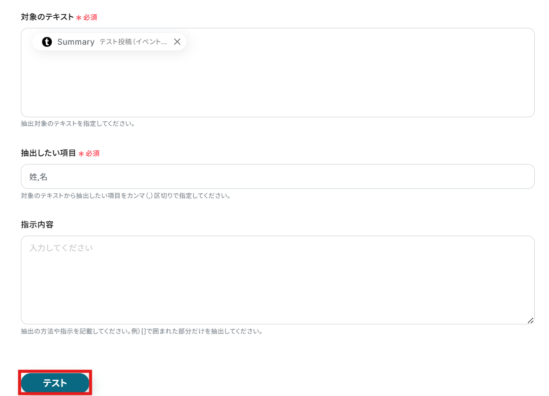抽出する情報が複雑な場合は、何度かテストを行い、求めている項目が抽出できるか確かめてみることがオススメです。