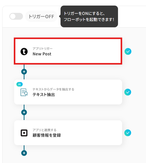 今回は「TumblrでNew Postを検知したら、テキストを抽出しSquareで顧客情報を登録する」フローを作成していきます!
