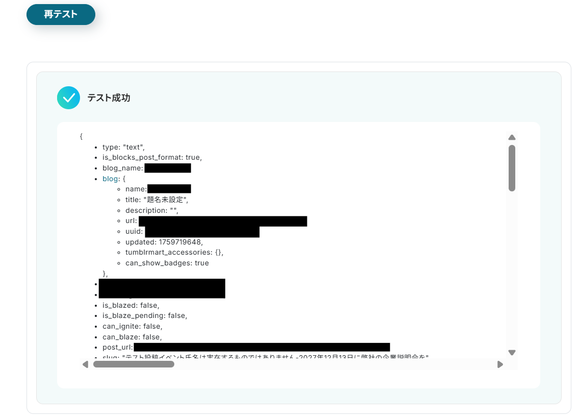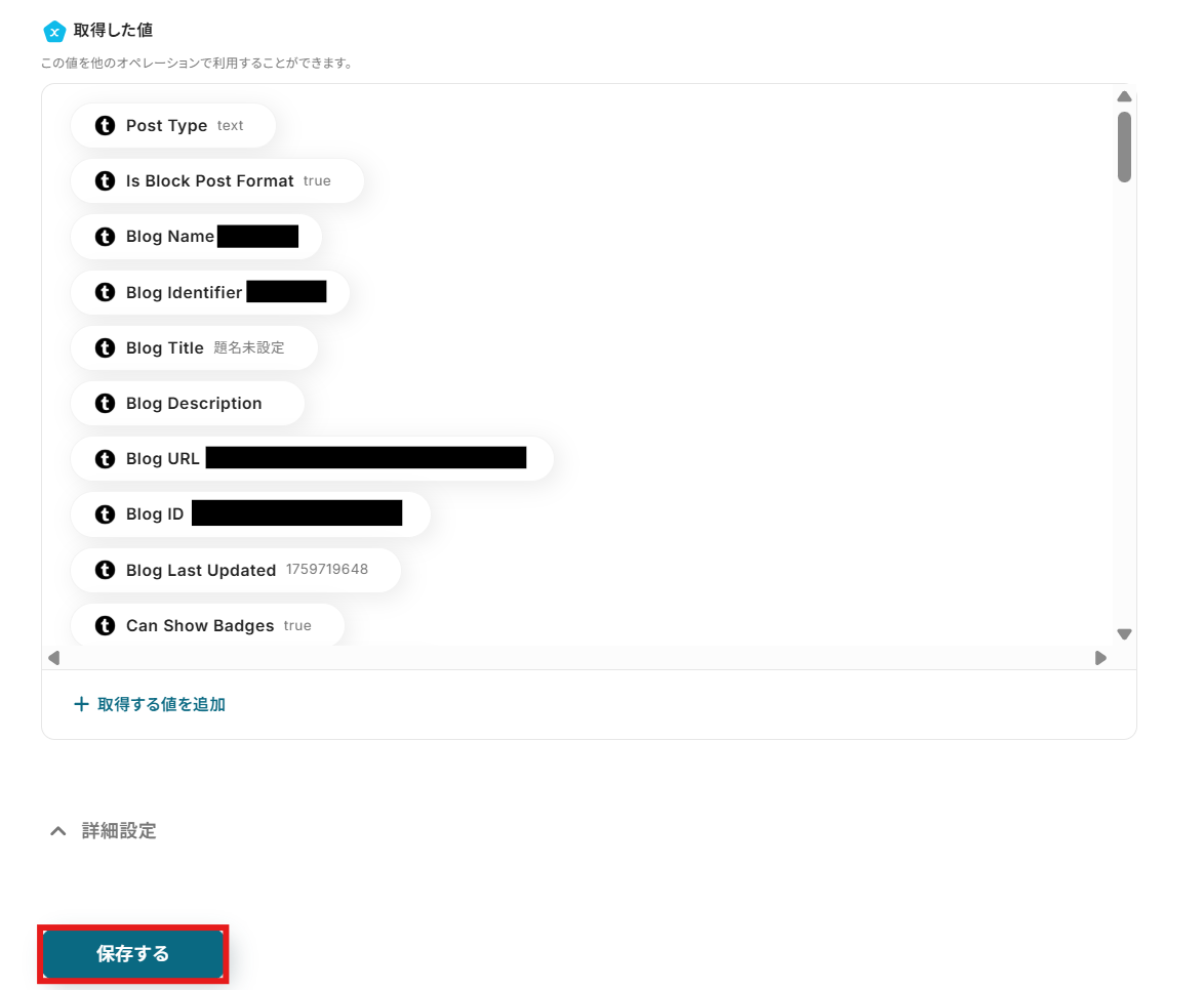 - Tumblrと連携するアカウント情報:フローと紐づけるアカウントを選択してください。