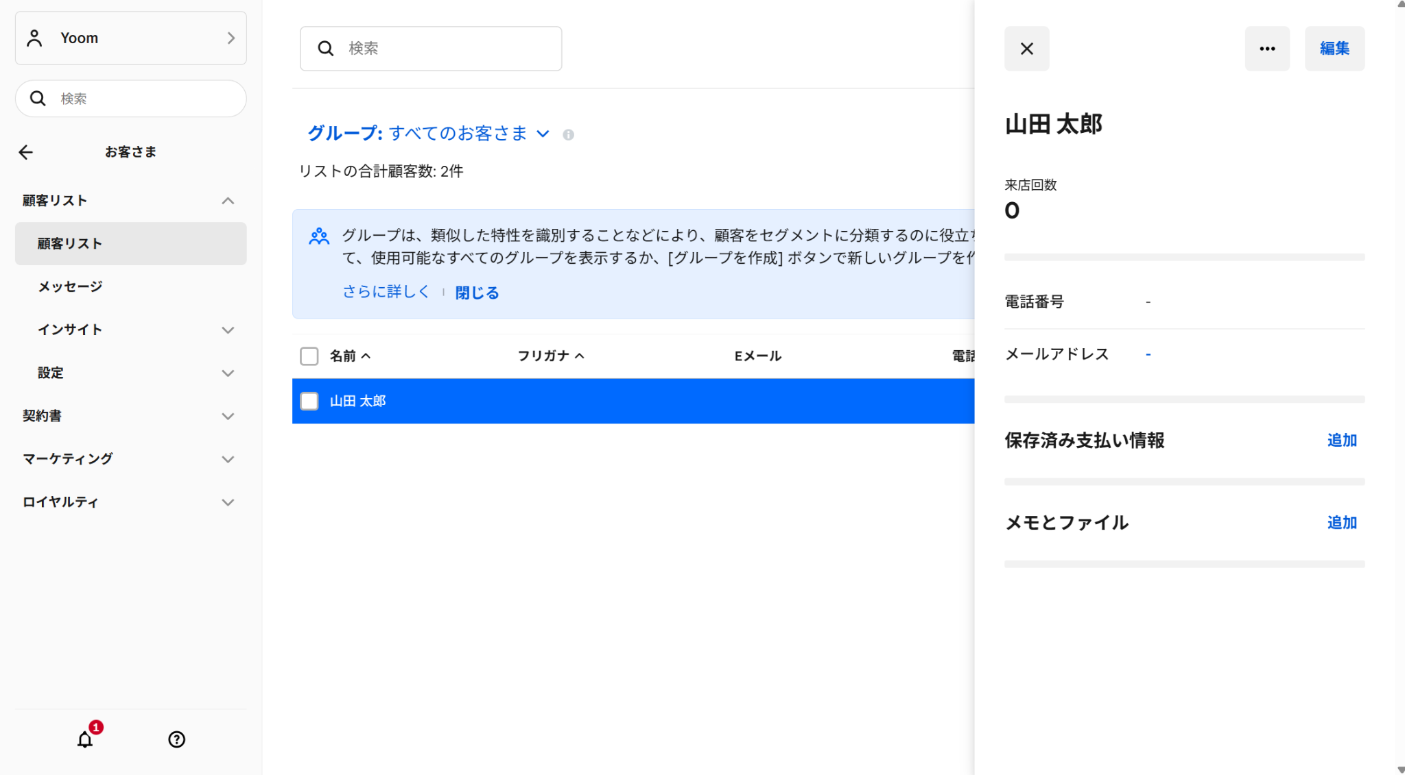Squareを参照し、顧客情報が登録されていることを確認しましょう。