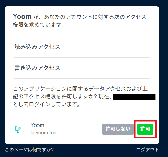 ログインすると以下の画面が表示されます。 内容を確認して、「許可」をクリックすればTumblrとYoomの連携は完了です。