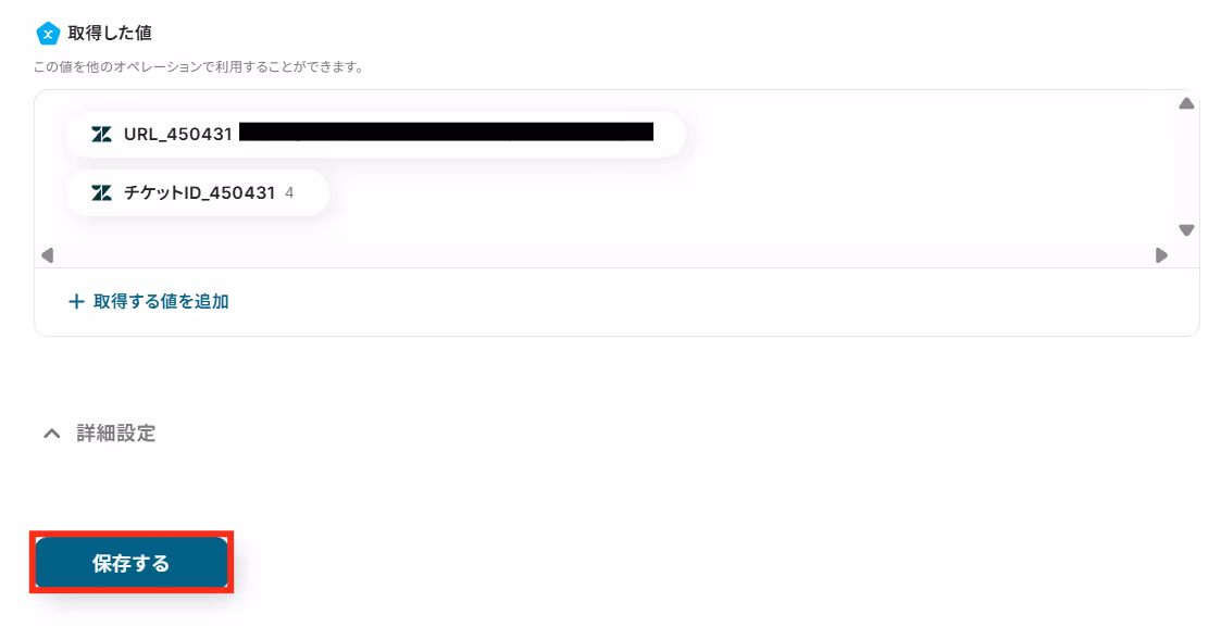 API接続設定画面でZendeskに作成するチケットの内容を設定していきます。