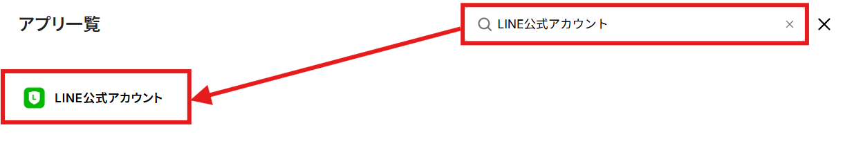 「新規接続」を選択すると「アプリ一覧」が表示されるので、LINE公式アカウントを検索して選択しましょう。