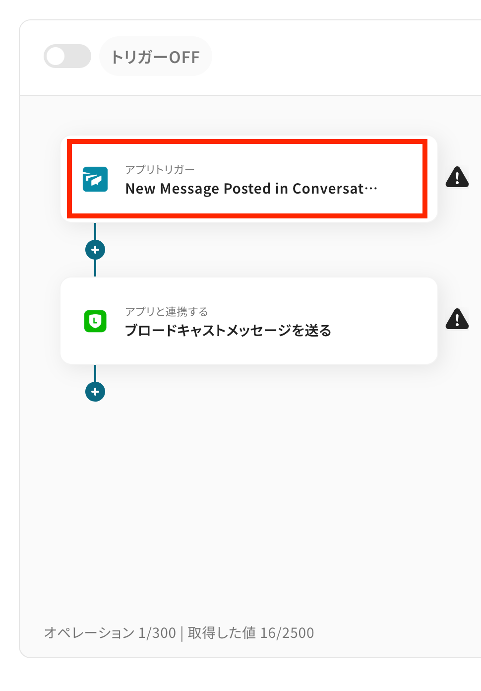 このワークフローを活用すれば、Twistでのメッセージ投稿をきっかけに、LINE公式アカウントでブロードキャストメッセージを自動で送信できるため、チーム内の情報共有と顧客への情報発信をスムーズに連携させることが可能です。