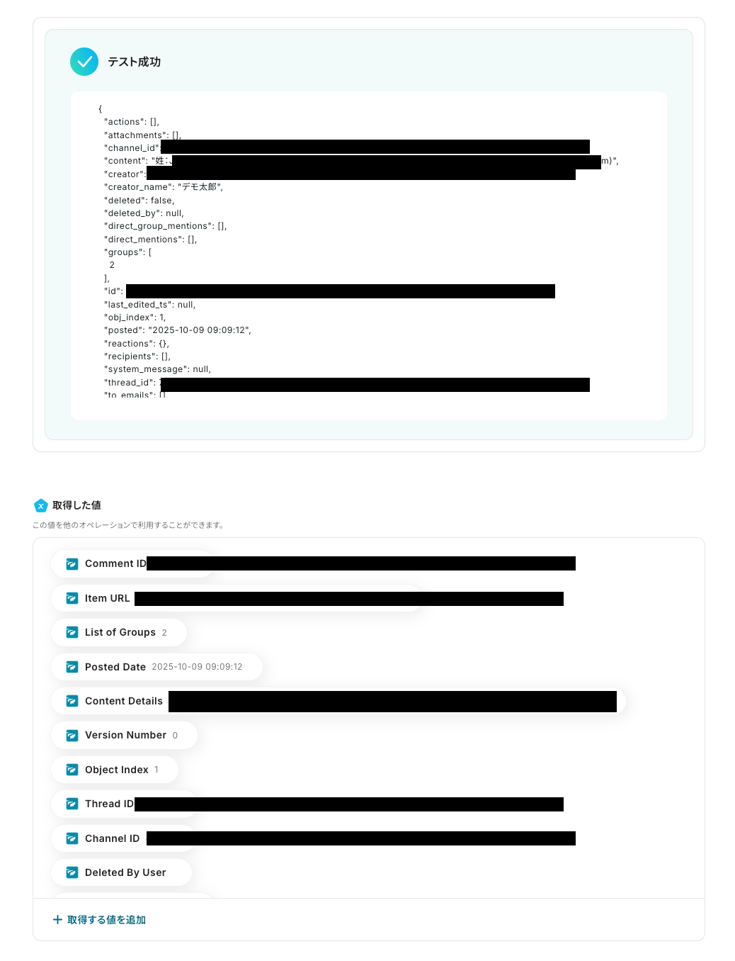 取得した値を活用することで、固定値ではなく、トリガーが実行されるたびに最新の情報が反映できます。