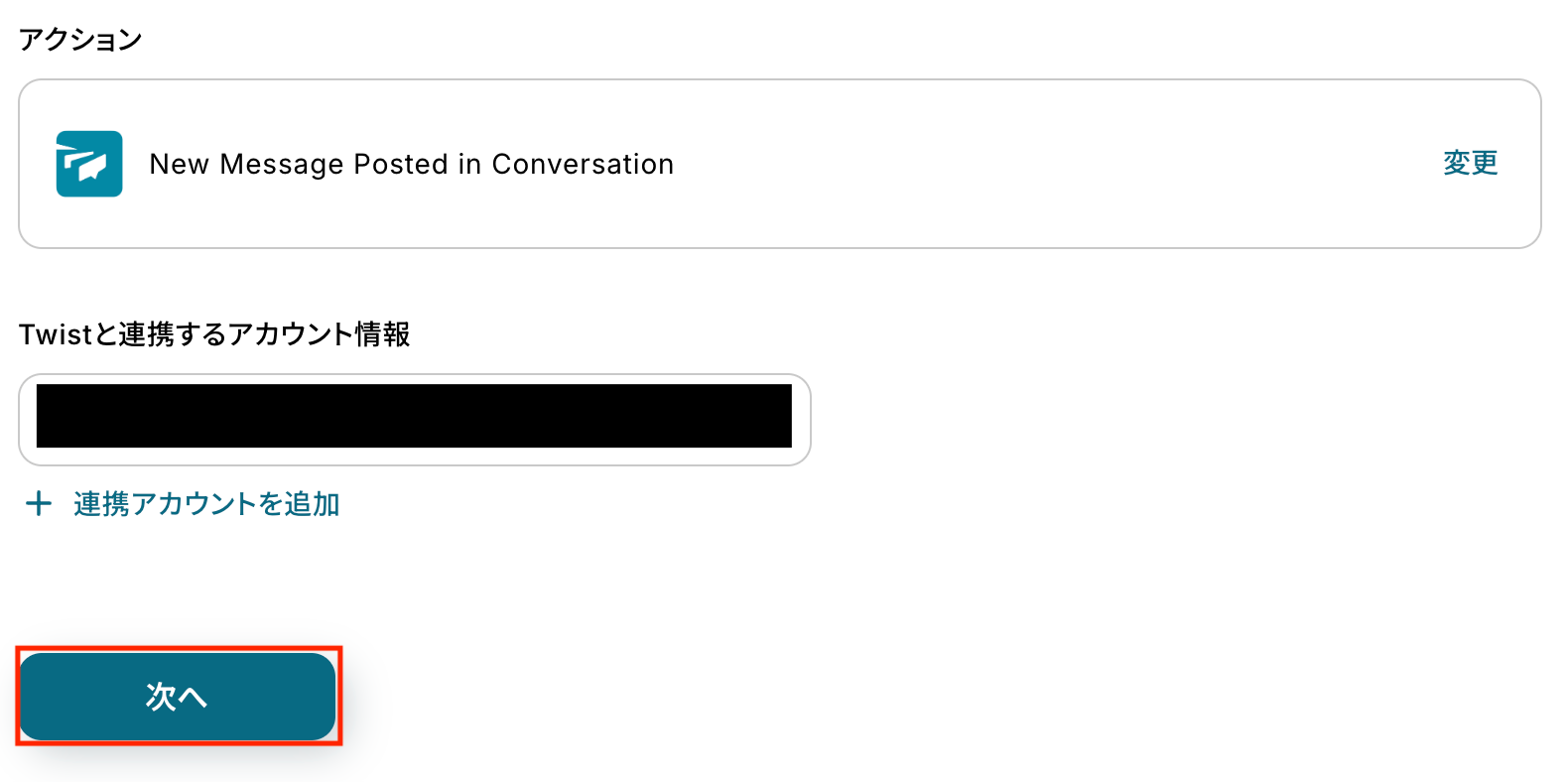 Twist連携アカウントを選択し「次へ」をクリックします。