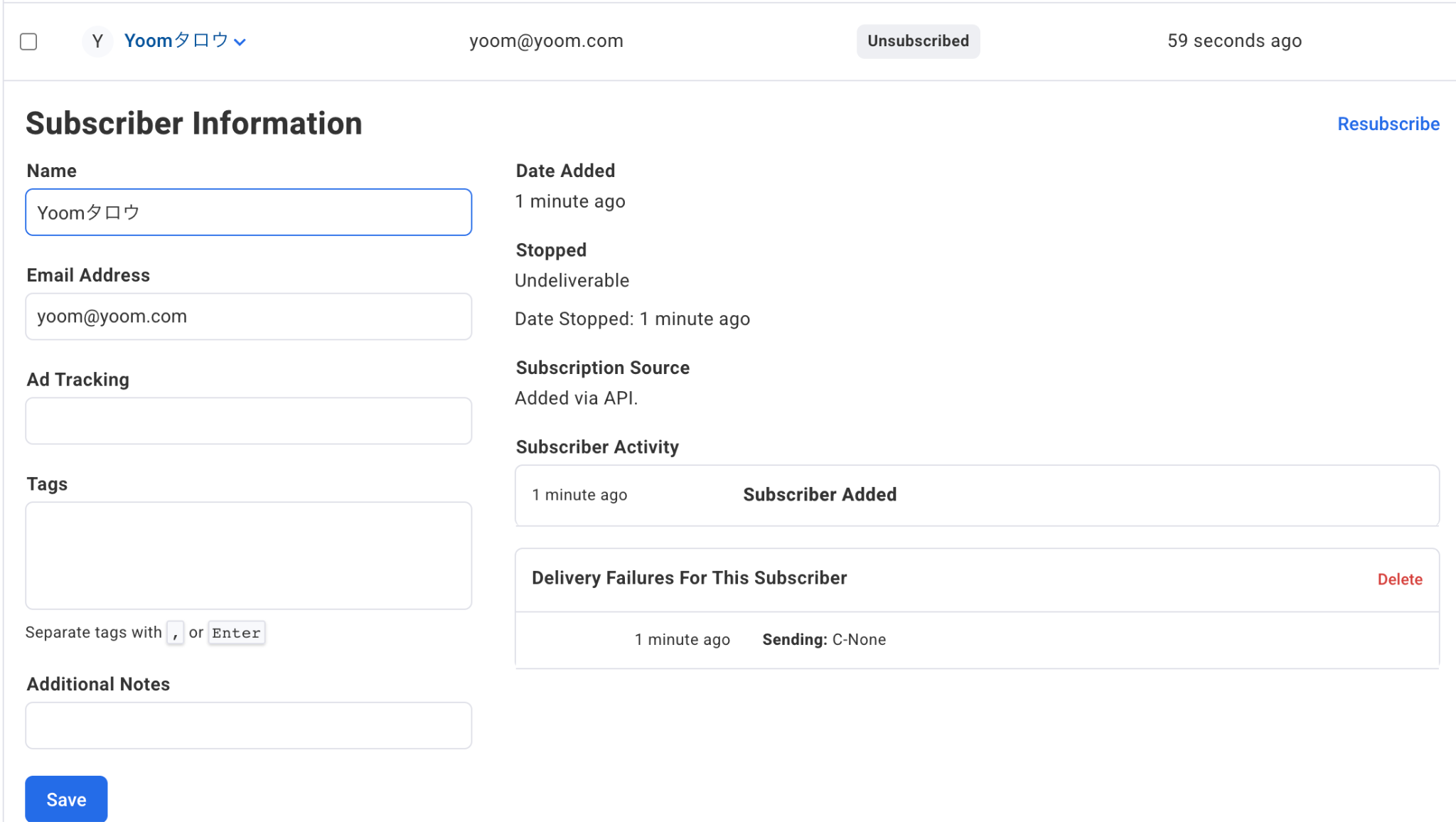 TypeformとAWeberでは、データが重複して登録されることはありません。メールアドレスが重複するユーザーからフォームを受け取った場合、AWeber上で新規購読者を作成する際にフローボットにエラーが発生します。ただし、氏名が重複する場合は、エラーは発生しません。