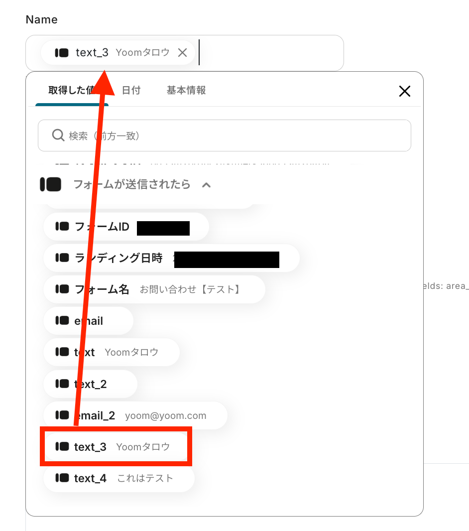 Typeform、freee人事労務のそれぞれとYoomを連携してください。 Typeformの値を取得する方法は「『取得する値』を追加する方法 」を参照ください。