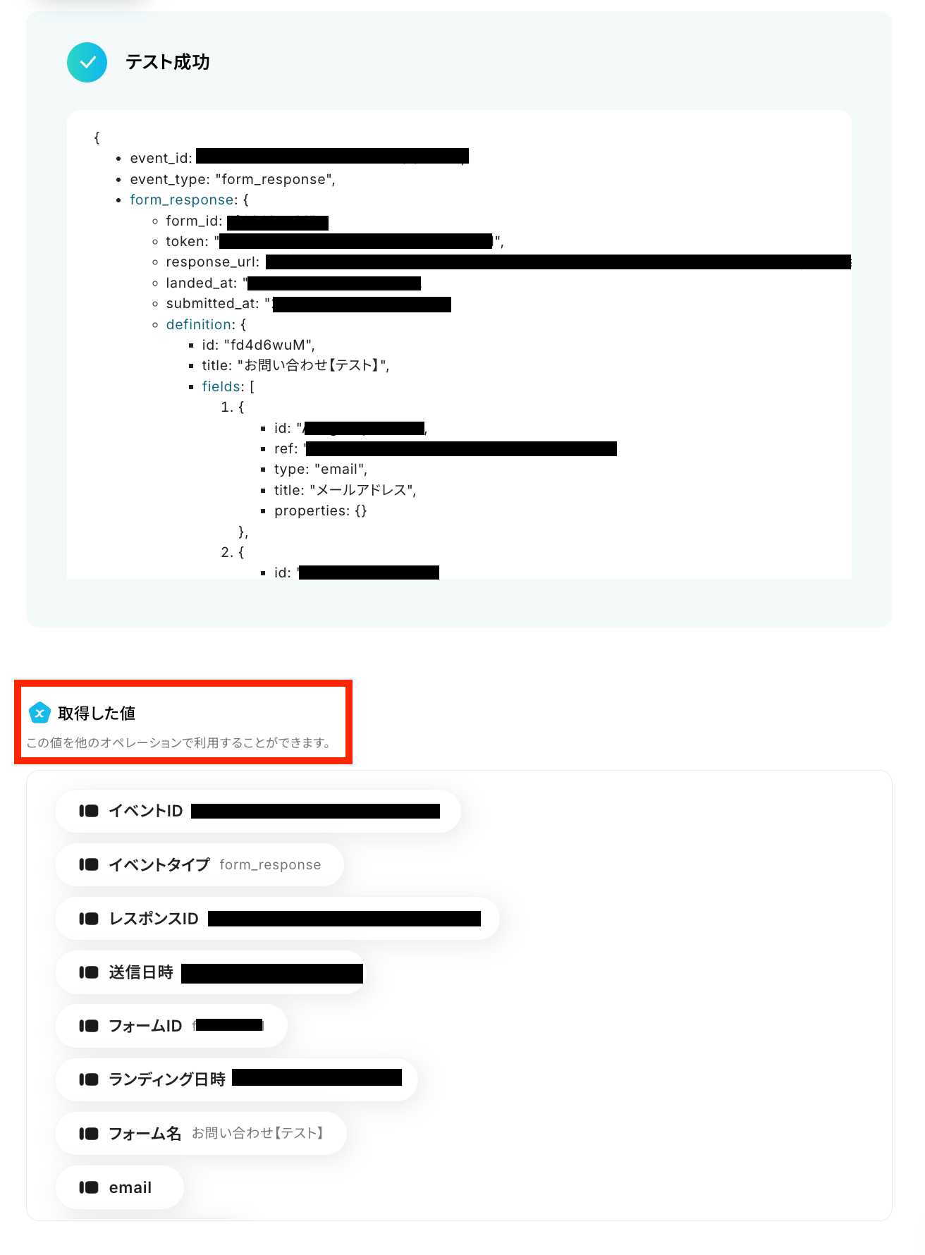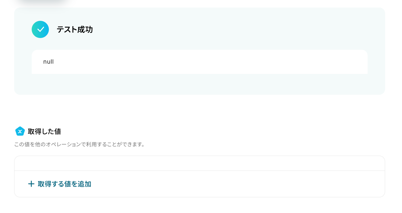 テスト成功で、取得した値 が取得されます。