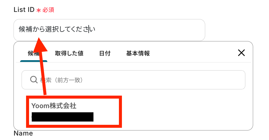 List IDも同じく選択します。