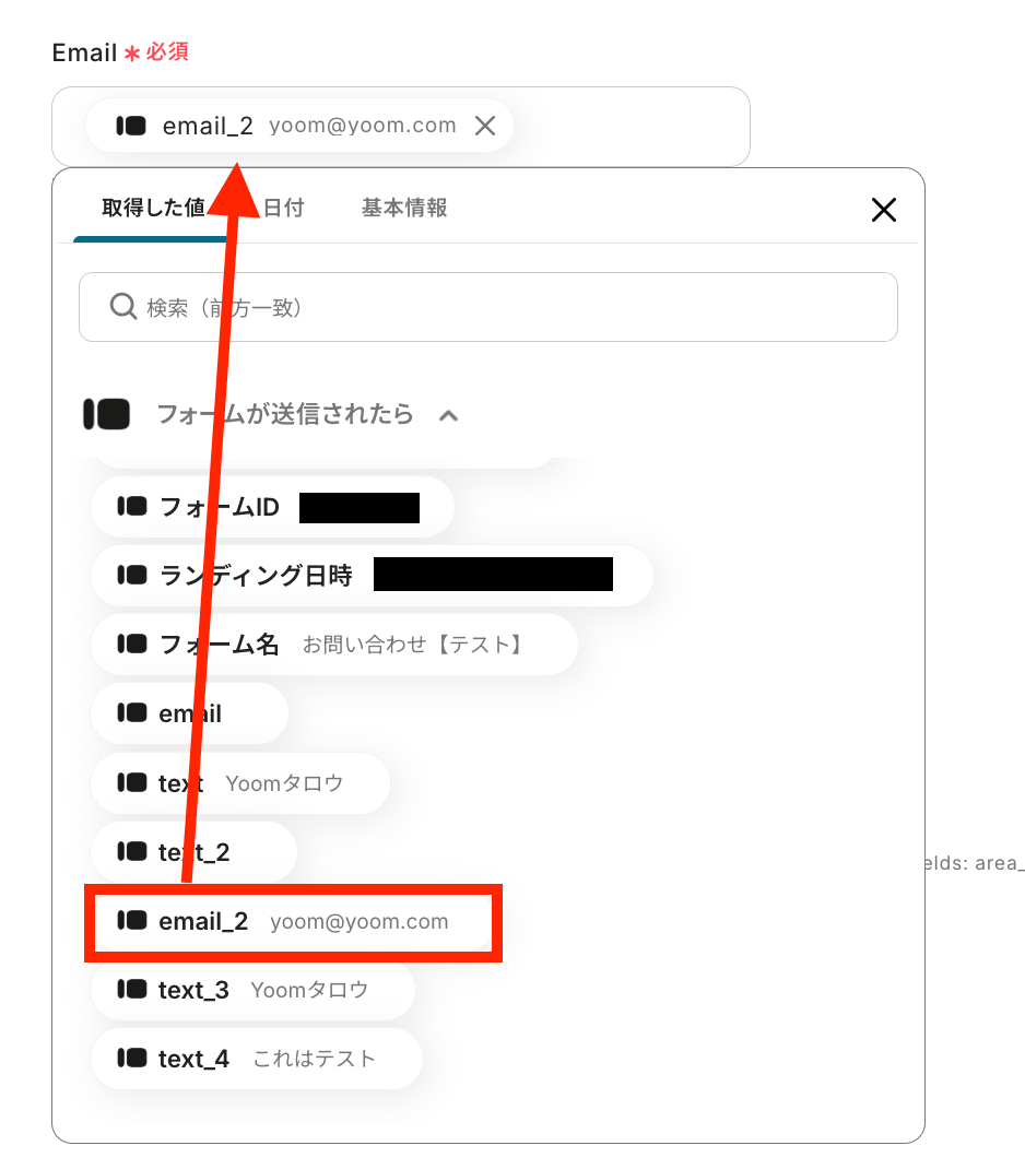 ※取得した値とは、トリガーやオペレーションにて受け取ったデータのことです。 取得した値は、後続のオペレーション設定時の値としてご利用いただくことができ、フローボットを起動する度に、変動した値となります。
