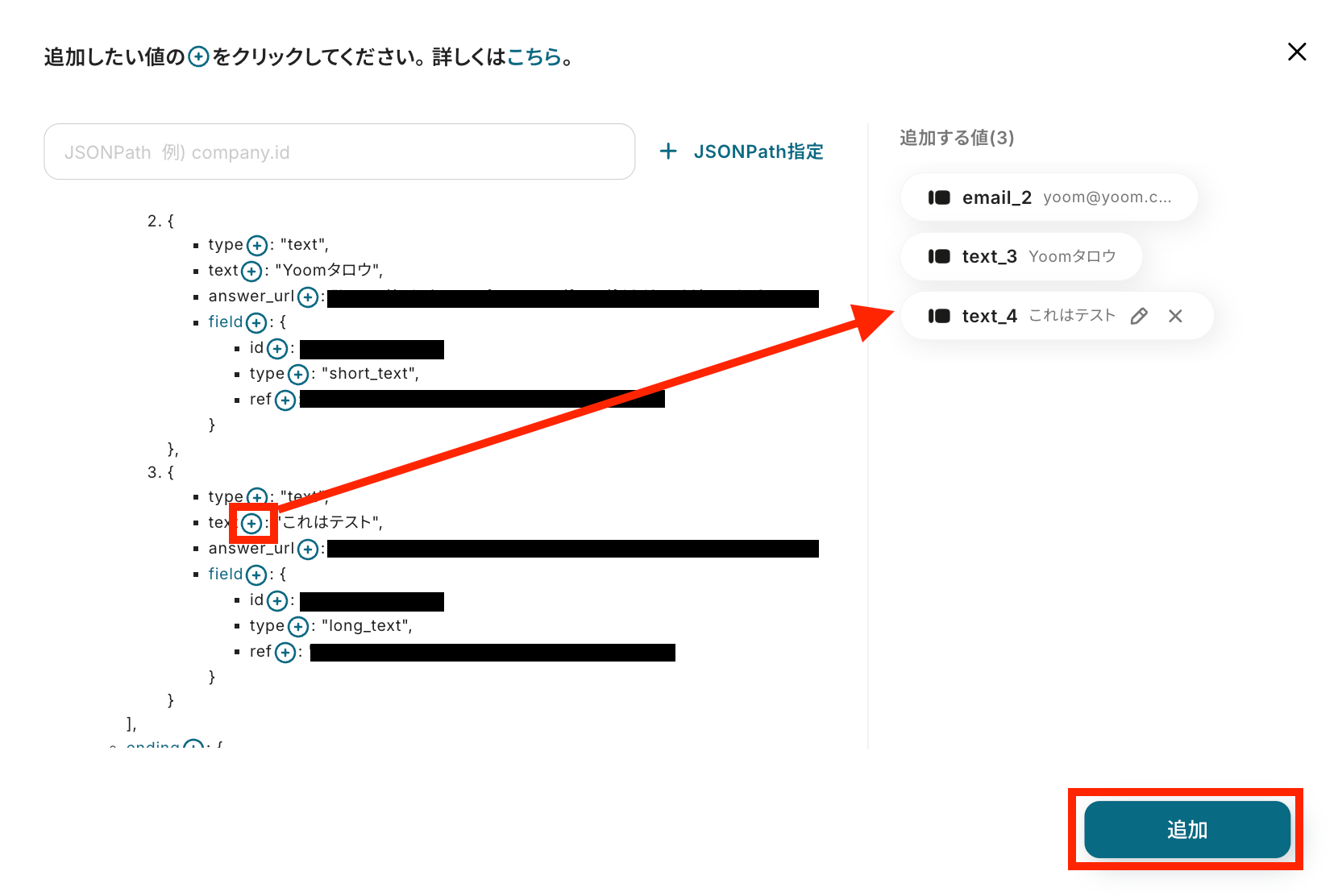 追加したい項目の右にあるプラスマークをクリックして追加する値を選択し、「追加」ボタンを押します。