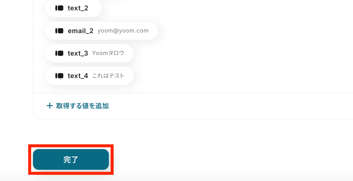 最後に、Yoomの設定画面で完了ボタンをクリックして設定を保存しましょう。