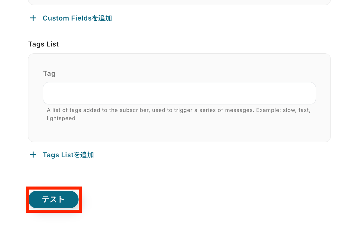 その他に名前やタグの設定などを任意で行ったら、テストを実行して下さい!