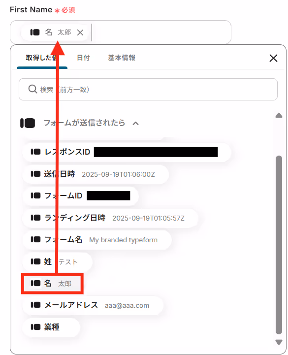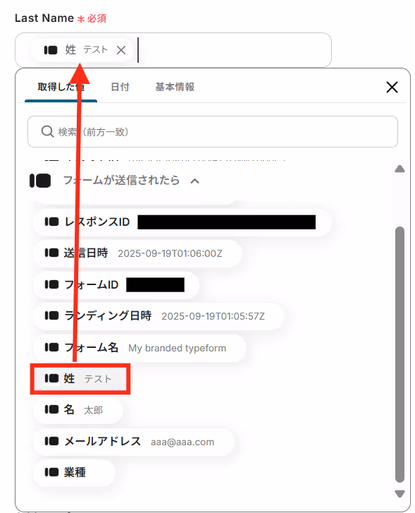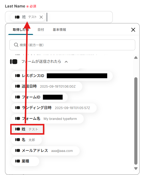 次の画面のテストでフォームの回答結果を取得するため、先ほど作成したフォームに回答を送信してください。