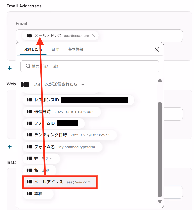 画面赤枠の「フォームが送信されたら」をクリックしてください。