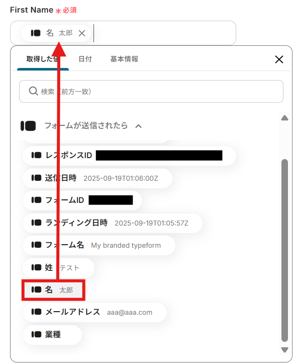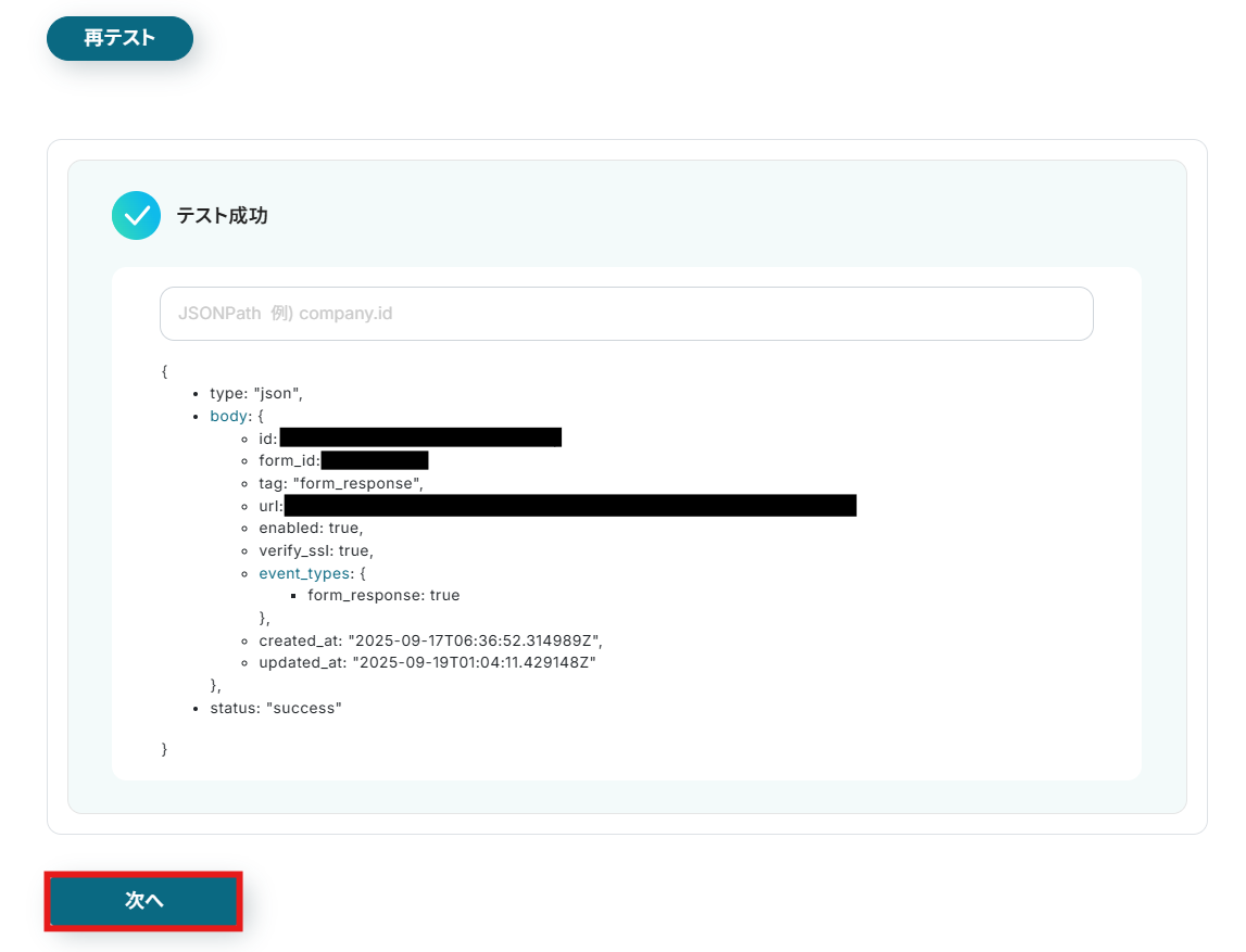 - タグ:任意の値を設定してください。わからなければ注意書きにも記載されている「form_response」を設定しましょう。