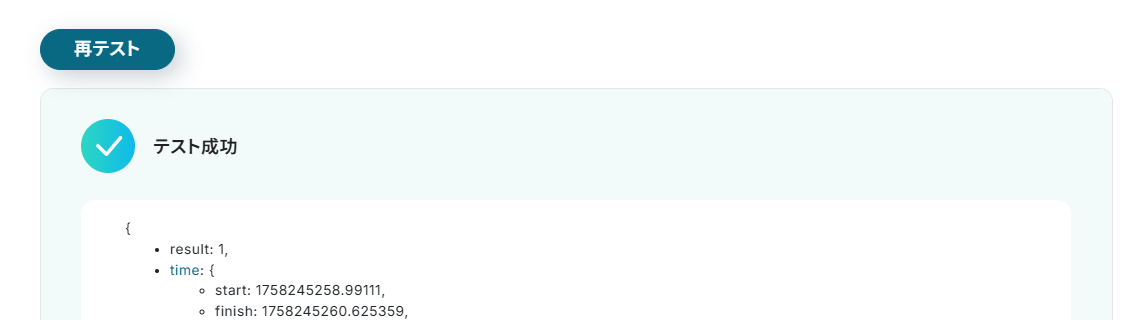 テスト成功が表示されたら次へボタンをクリックしましょう。