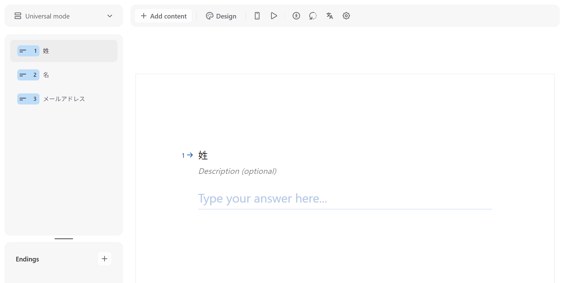 また、次の画面の操作を行う前にTypeformにてフォームを作成しましょう。